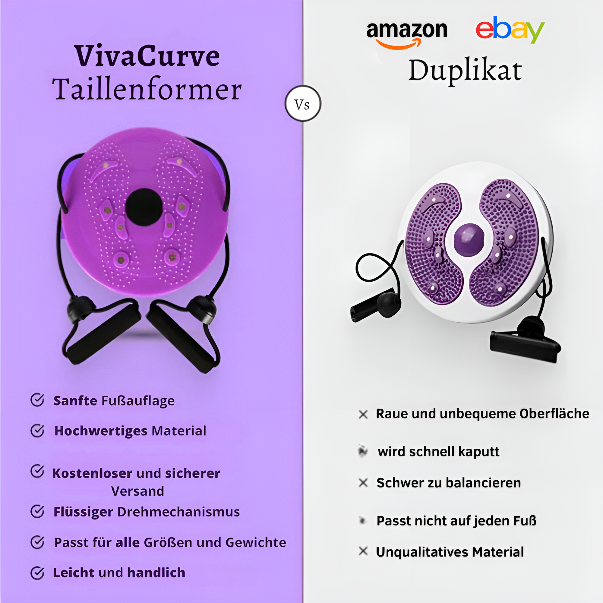 Durch die wachsende Nachfrage nach unseren Produkten sind auf Amazon und eBay zahlreiche Kopien von VivaCurve aufgetaucht. Diese Nachahmungen sparen bei der Produktion, bieten minderwertige Qualität und einen insgesamt unzureichenden Service.